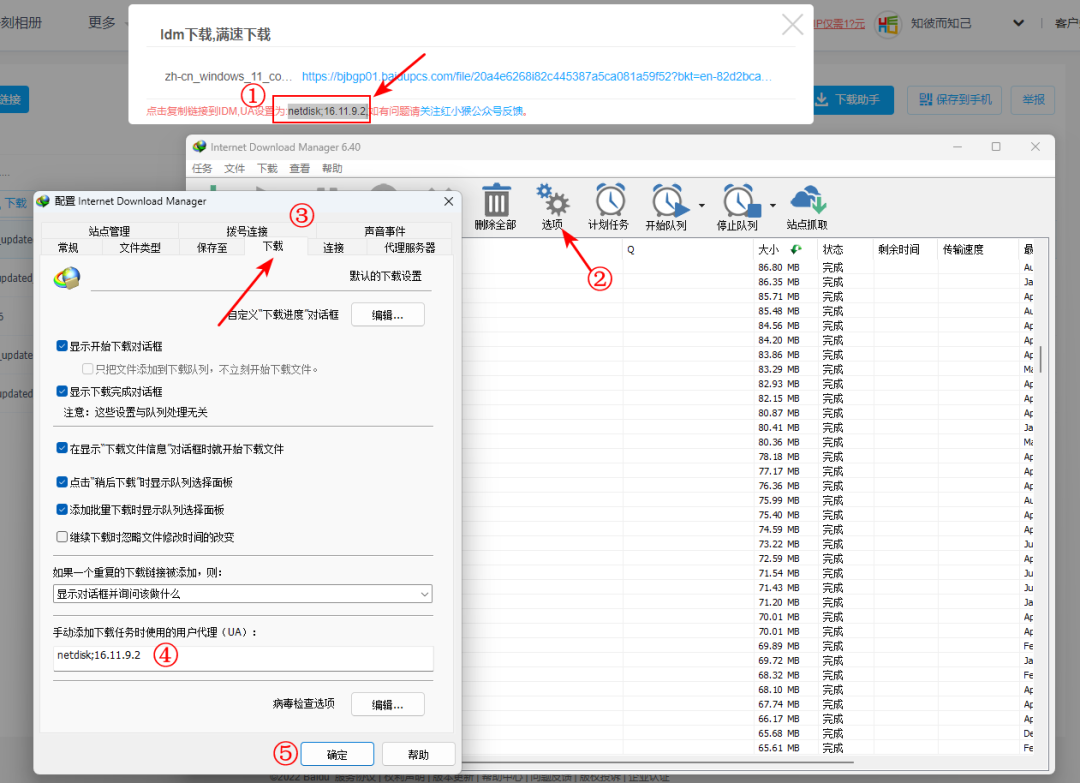 这里的UA值会经常变,因此,只要发现和IDM中设置的不符,就要修改一下,否则下载肯定失败。基本上使用这种方法下载时,如果发现下载失败时,都要看看这里是否设置正确。