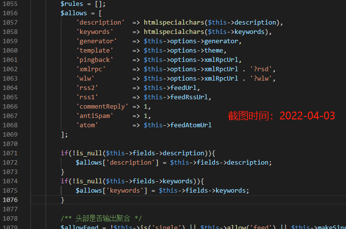 var/Widget/Archive.php文件,在第1071行($allows = [...]后一行)增加如下代码:
